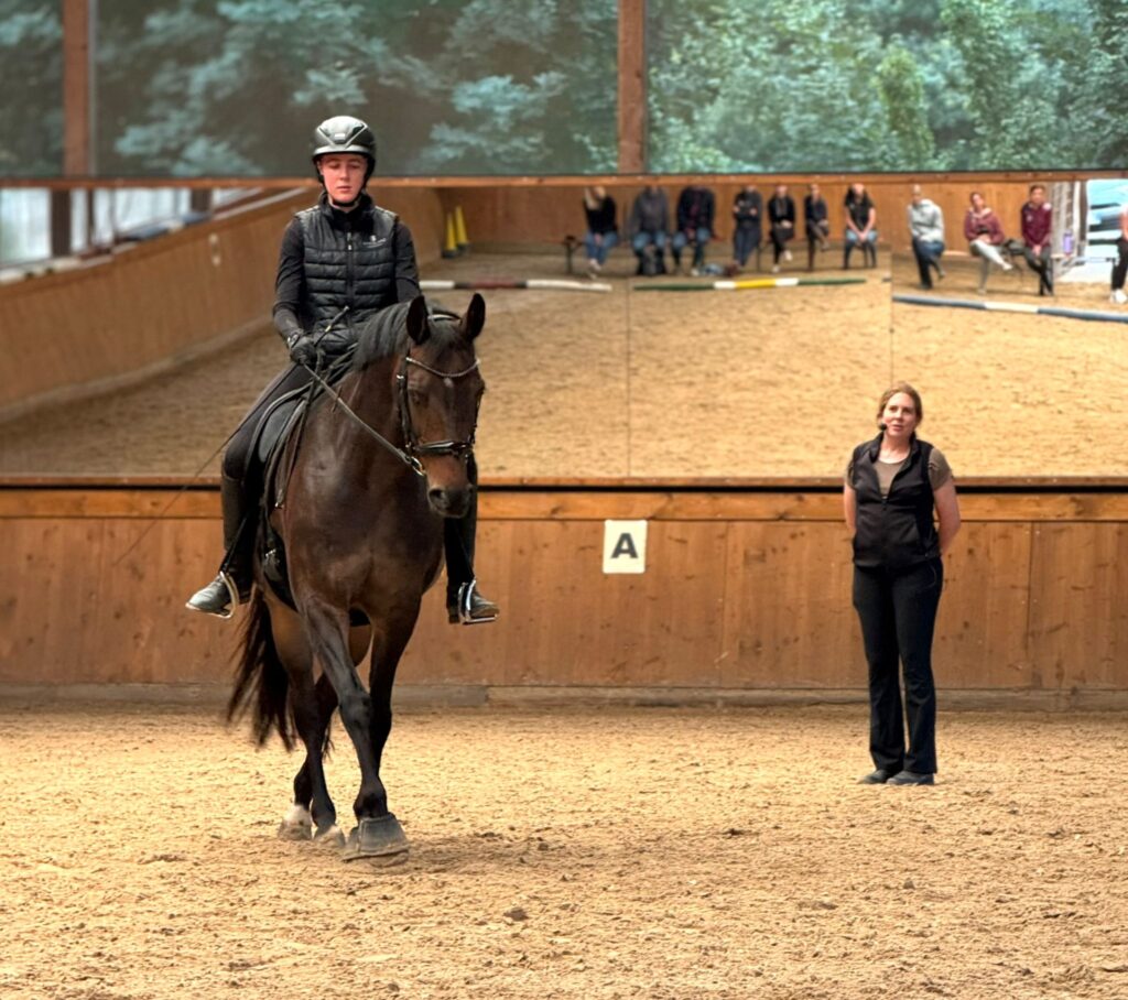 Das Seminar „Anlehnung“ war das dritte im Zyklus der Seminare von Uta Fricke zum Thema „Ausbildungsskala“. Mit einem theoretischen Teil, einem praktischen Teil für die Teilnehmer an sich und einem Teil, in dem Beispiele anhand verschiedener Pferdetypen vorgestellt wurden, war das Seminar wieder eine informative Veranstaltung auf allen Ebenen.